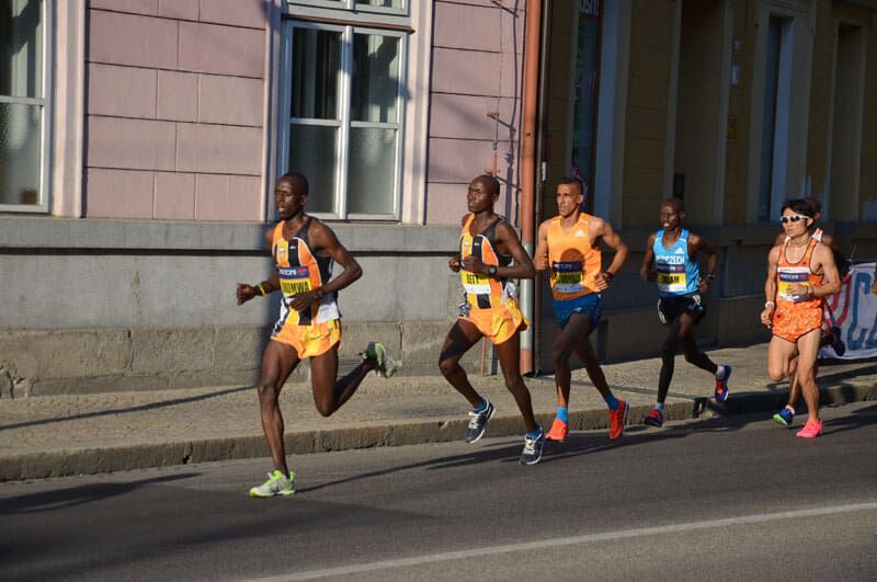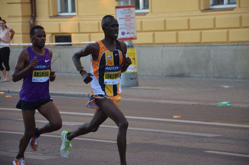 28° Celsius beim Start – die Bedingungen hätten schwieriger nicht sein können. In vielen sonnigen Passagen lagen die Temperaturen nochmal deutlich darüber und der Asphalt flimmerte. Dennoch entwicklete sich auf den ersten Kilometern ein schnelles Rennen, das im Laufe der Zeit seine “Opfer” fordern sollte. Leider erwischte es dabei unsere beiden Herren, die, aufgrund von Knieproblemen bei Bett und einer eben überstandenen Malariaerkrankung bei Lokomwa, aber nicht nur der Hitze zu zuschreiben waren. Dennoch kämpften beide brav und finishten auf den Plätzen 5 und 7. Nicht ihr wahres Niveau aber guter Kampfgeist.