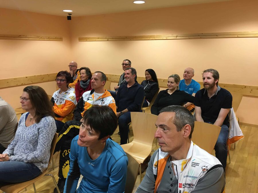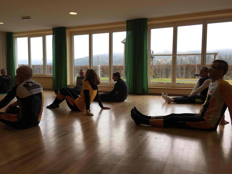 Nach dem erfolgreichen Start in Gmunden im vergangenen Herbst sind auch heuer wieder 26 Mitglieder der Einladung zum einem gemeinsamen Wochenende (26./27.11.2016) gefolgt.hotel In Bad Aussee, dem geografischen Mittelpunkt Österreichs, ließen wir das Laufjahr 2016 gemeinsam ausklingen. Das JUFA Hotel Bad Aussee bot uns dafür den geeigneten Rahmen. Einige Mitglieder waren schon am Freitag angereist und so starteten wir am Samstagvormittag mit Aufwärm-MobiGym unter Anleitung von Sportphysiotherapeutin Kerstin Petz