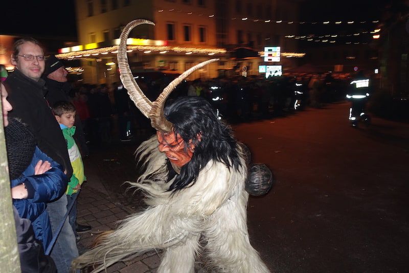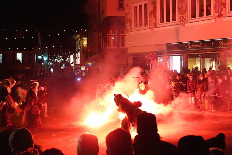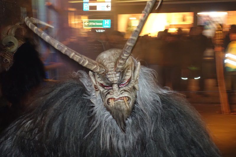 Gemeinsam besuchten wir dann am frühen Abend den Adventmarkt und bestaunten das Krampustreiben mit 21 Krampusvereinen, die durch das Stadtzentrum von Bad Aussee zogen. Über 400 Passen aus der Steiermark, Oberösterreich und Salzburg mit Höllenfeuer, aufwendigen Masken und furchterregenden Posen zeigten eindrucksvoll ihr Können bei diesem Krampuslauf.