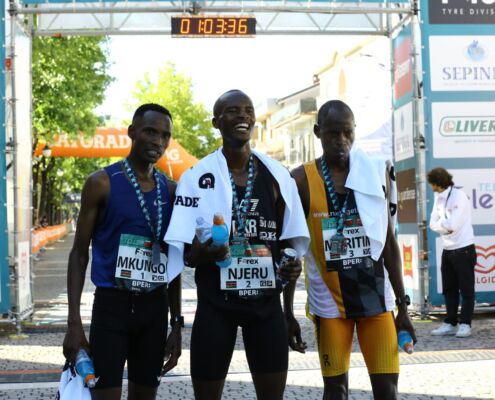 Für unser zweiten Schauplatz waren Teresiah Kwamboka OMOSA, Philimon Kipkorir MARITIM und Robert Kiplangat YEGON nach Süditalien gereist. Ca. 40 Km nordöstlich von Neapel wurde ein stark besetzter Halbmarathon ausgetragen, bei dem wir schon mehrmals mit guten Ergebnissen zu Gast waren.