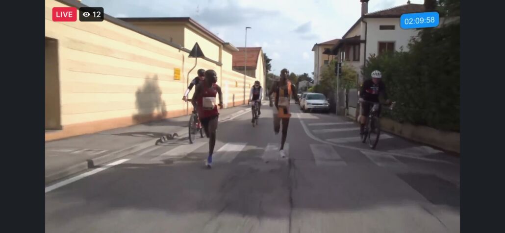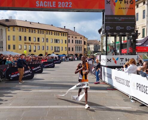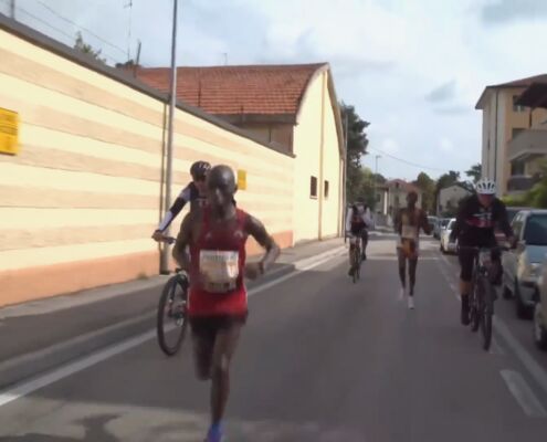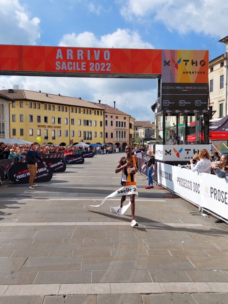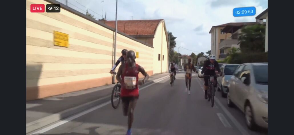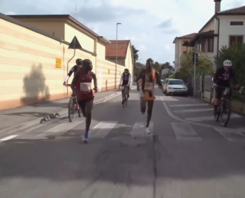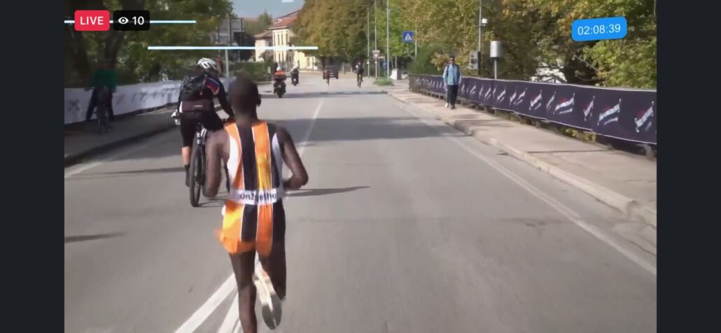 Gestern war die Gruppe in Sacile, ca. 40 Km westlich von Udine, eingetroffen. Für Simon Kamau NJERI war es das zweite Antreten bei diesem Bewerb, den er 2021 für sich entscheiden konnte. Simon war vergangene Woche von Kenia nach Österreich gekommen und wollte seine gute Vorbereitung unter Beweis stellen. Die wellige Strecke mit Start und Ziel in Sacile führte zumeist auf Asphaltbelag durch die Dörfer der Umgebung, wies aber auch kurze Schotterpassagen und enge Kurven auf.