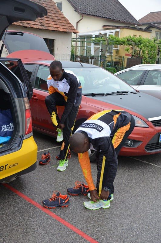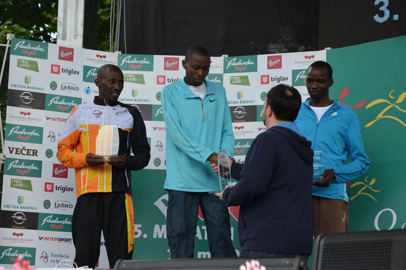 Eigentlich hätte er vor einer Woche in Skopje starten sollen. Durch die Absage waren wir organisatorisch gefordert und haben versucht ihm kurzfristig einen Ersatzmarathonstart zu ermöglichen, was uns sletztendlich am gestrigen Freitag in Radenci gelang. Zwar mußten wir sein Nenngeld selbst bezahlen, die Hoffnung auf eine gute Platzierung und die Chance nach 4 Monaten Vorbereitung zumindest einen Wettkampf zu bestreiten überwog aber. Gemeinsam mit unseren Halbmarathonstartern Henry Kimani Mukuria und unserem Debütanten Joseph Lokwang Lore ging es heute früh von Loipersdorf ins nahe Radenci. Wetter passte ausgezeichnet, windstill, etwa 15°und leicht bewölkt, wenn auch mit hoher Luftfeuchtigkeit. Die Konkurrenz aus Kenia (mit nicht lizenziertem ungar. Manager) war groß und aufgrund der Tatsache, dass es Preisgeld nur für die Top 3 gab, ein enges Rennen programmiert.