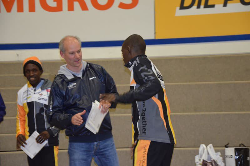 Die Anreise aus Loipersdorf (10 Stunden Fahrzeit) bewältigten wir problemlos bei tollem Wetter in 2 Etappen. Am Donnerstag Abend erreichten wir Heiden (bei St.Gallen), wo wir bei Olivier, Gründer unseres Partners ON, mit tollem Abendessen empfangen wurden. Es gab auch ein Wiedersehen mit Geoffrey Gikuni NDUNGU, der derzeit in der Schweiz medizinisch behandelt wird. Mehr dazu in den nächsten Tagen. Nach einem akrikanischen Gesangsabend und einer guten Nacht standen am Freitag Vormittag Gespräche bezüglich unserer Partnerschaft mit ON und diversen Zukunftsideen am Programm, ehe es weiter nach Kerzers ging. Streckenbesichtigung, lockeres Auslaufen, Pastaparty, Läuferpräsentation und danach früh ins Bett – so sah der restliche Tag gestern aus.