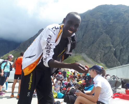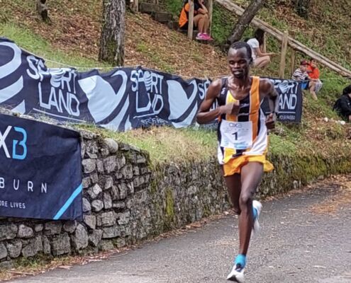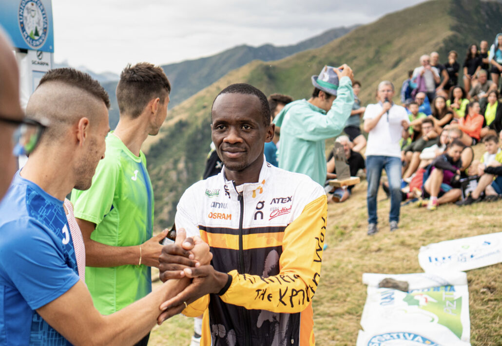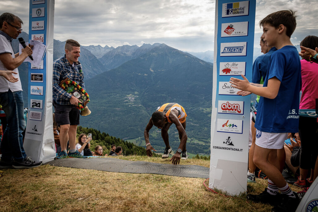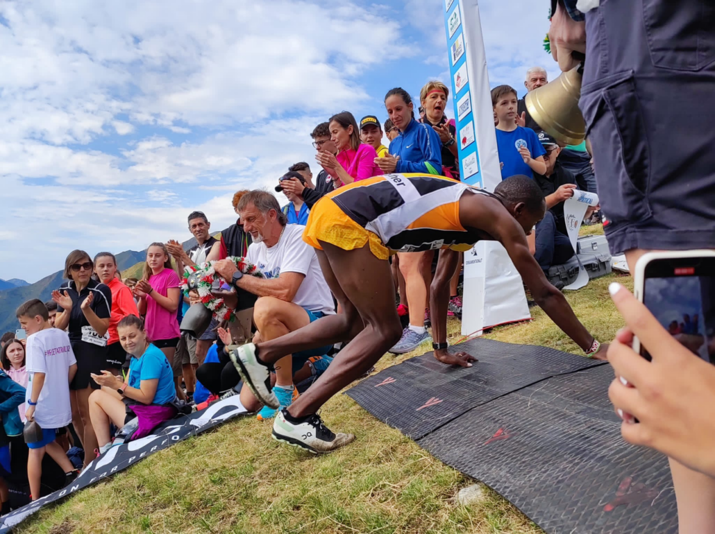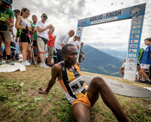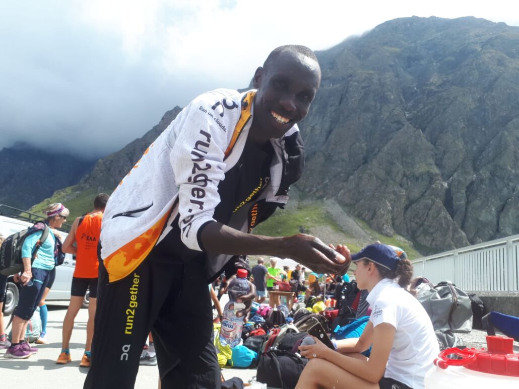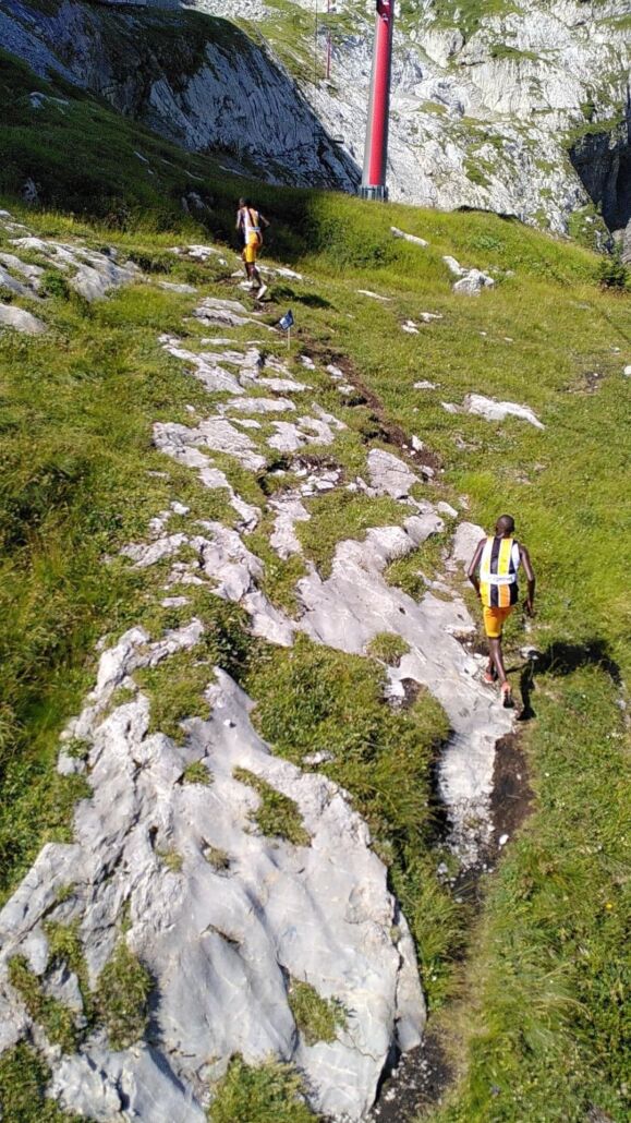 Philemon Ombogo KIRIAGO und Michael Selolo SAOLI hatten gleich eine doppelte Aufgabe vor sich, galt es doch zuerst am Samstag den unbeschreiblich schweren Tri Vertical zu absolvieren. Die Würze dieses Bewerbes liegt weniger in der Länge der Strecke von 3,5 Km, als vielmehr in der Steilheit des Geländes mit 1.000 Hm! Der Appell, zu Beginn nicht gleich alle Körner zu verschießen ging heute leider ins Leere, denn kaum fiel der Startschuss, legten die beiden wie von der Tarantel gestochen los und diktierten zu Beginn das Tempo. Doch heute hatten die beiden die Rechnung ohne ihren italienischen Wirt namens Andrea ROSTAN gemacht, der ihnen ab der Hälfte des Rennens die Schneid abkaufte und in neuer Streckenrekordzeit gewann. Während sich PHILEMON nur 27 Sec. hinter dem Sieger mit seinem 2. Platz hervorragend hielt, und mit seiner Zeit ebenfalls unter dem alten Streckenrekord blieb, musste SAOLI heute bitteres Lehrgeld bezahlen und landete mit über 5 Minuten Rückstand im geschlagenen Feld.