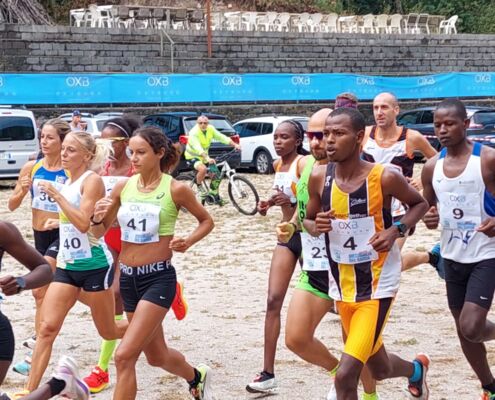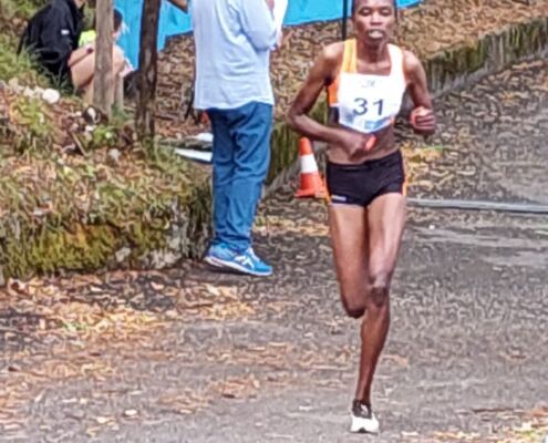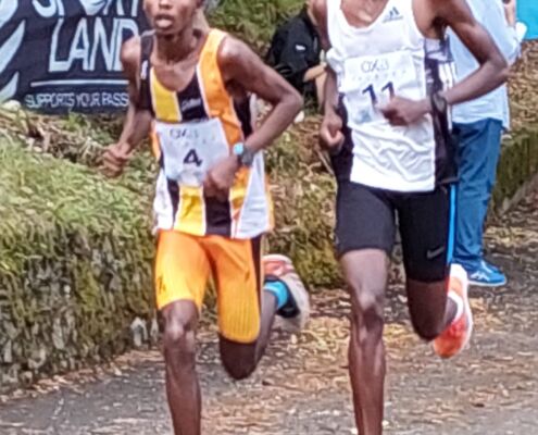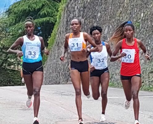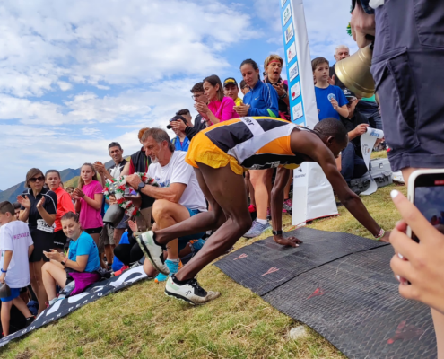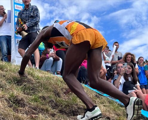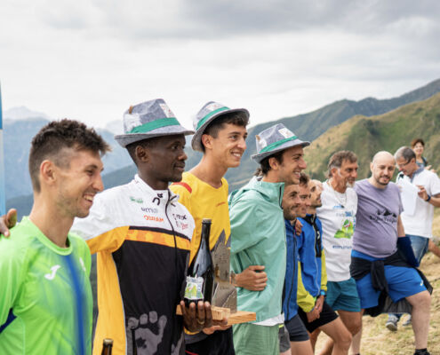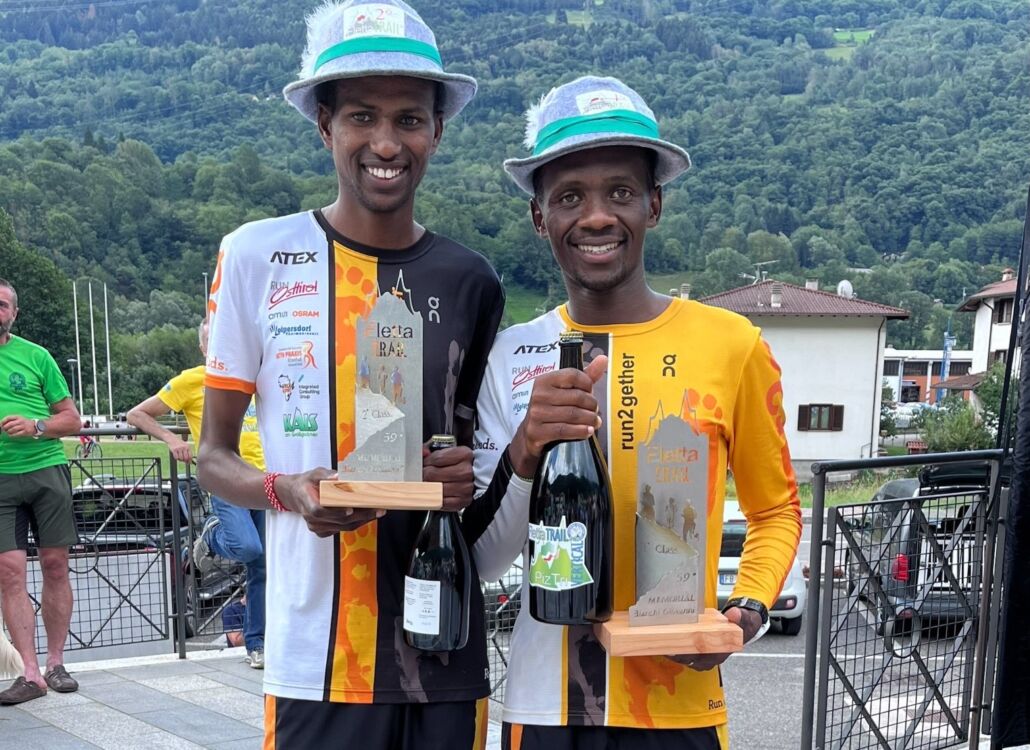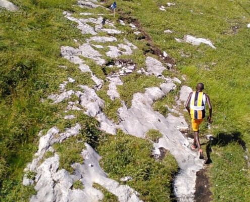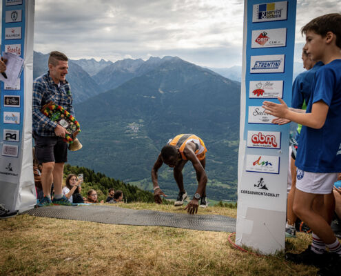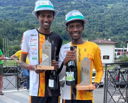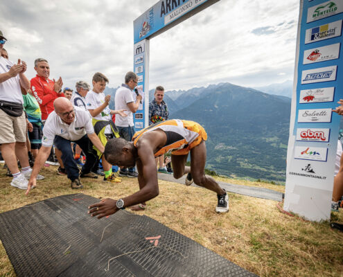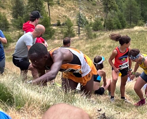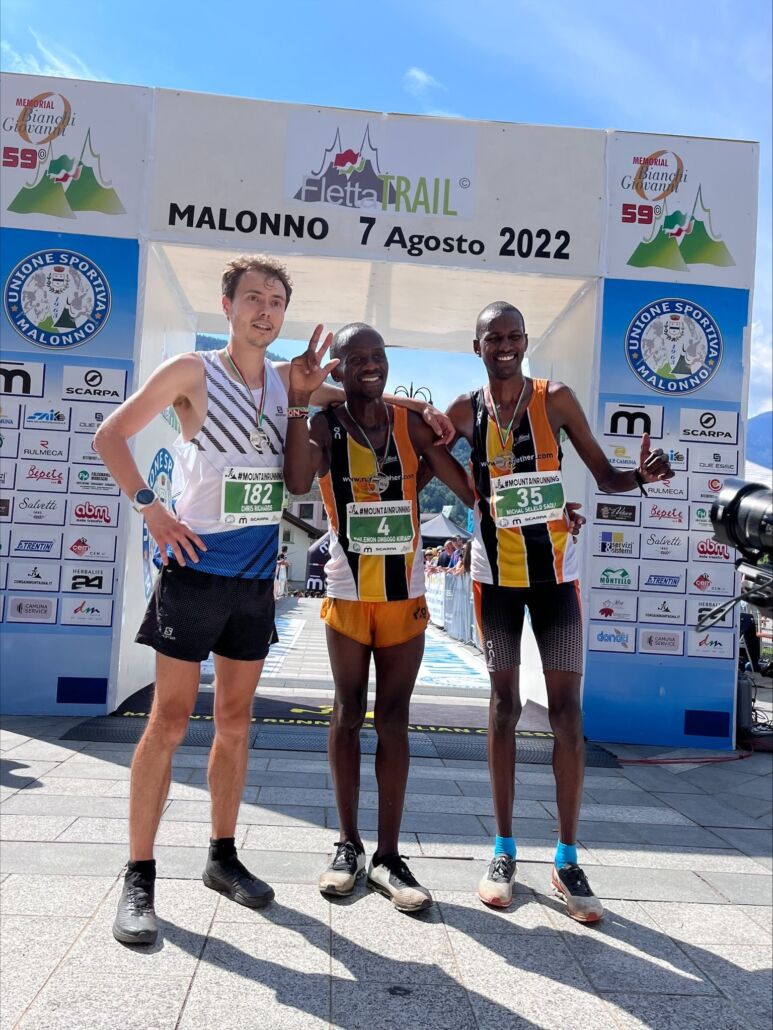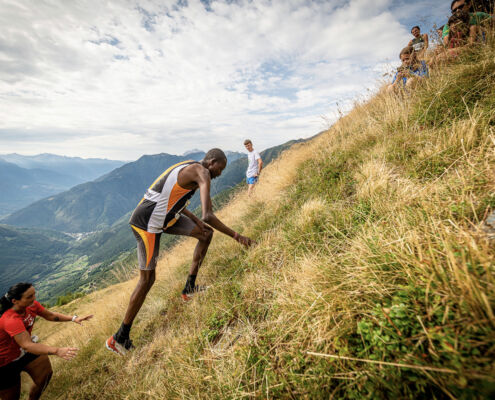 Philemon Ombogo KIRIAGO und Michael Selolo SAOLI hatten gleich eine doppelte Aufgabe vor sich, galt es doch zuerst am Samstag den unbeschreiblich schweren Tri Vertical zu absolvieren. Die Würze dieses Bewerbes liegt weniger in der Länge der Strecke von 3,5 Km, als vielmehr in der Steilheit des Geländes mit 1.000 Hm! Der Appell, zu Beginn nicht gleich alle Körner zu verschießen ging heute leider ins Leere, denn kaum fiel der Startschuss, legten die beiden wie von der Tarantel gestochen los und diktierten zu Beginn das Tempo. Doch heute hatten die beiden die Rechnung ohne ihren italienischen Wirt namens Andrea ROSTAN gemacht, der ihnen ab der Hälfte des Rennens die Schneid abkaufte und in neuer Streckenrekordzeit gewann. Während sich PHILEMON nur 27 Sec. hinter dem Sieger mit seinem 2. Platz hervorragend hielt, und mit seiner Zeit ebenfalls unter dem alten Streckenrekord blieb, musste SAOLI heute bitteres Lehrgeld bezahlen und landete mit über 5 Minuten Rückstand im geschlagenen Feld.