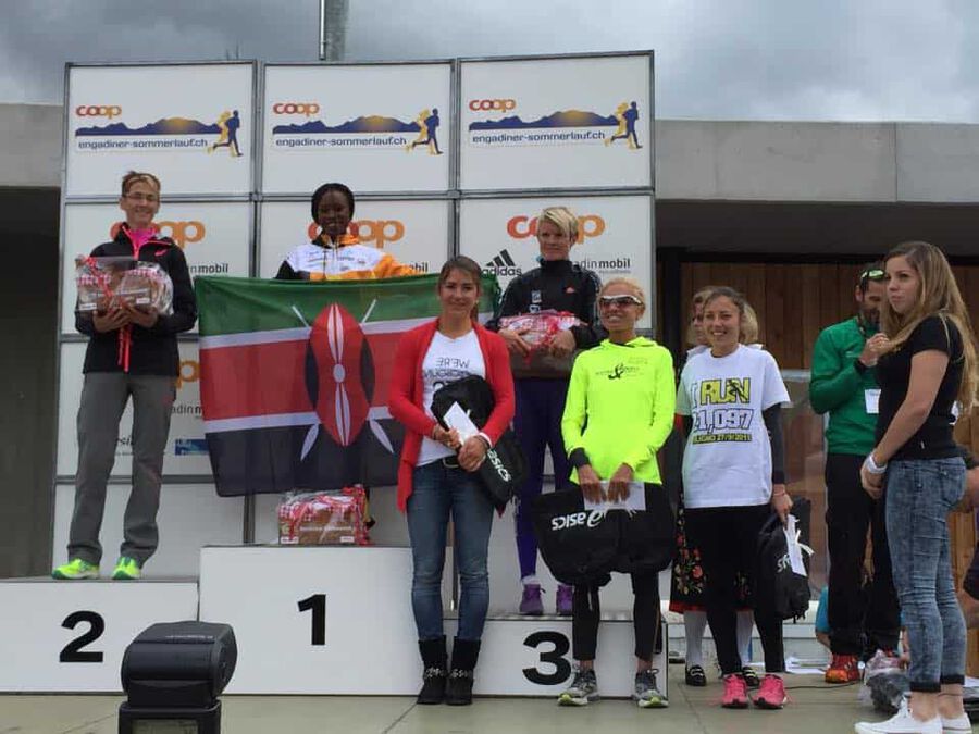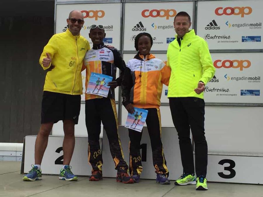 Das Engadin ist offensichtlich erfolgreicher Boden für unsere Run2gether Athleten. Beim 36. Engadiner Sommerlauf waren unsere beiden Läufer Veronicah Njeri MAINA und Simon Kiruthi MUTHONI eine Klasse für sich. Auf dem 25 Km langen und wunderschönen Lauf mit gut 200 HM führte die Strecke an drei Oberengadiner Seen vorbei. Zwei anspruchsvolle Anstiege auf immerhin 1.800 m Seehöhe ließen dennoch schnelle Zeiten zu. Bei großartigen Lauftemperaturen um die 10 Grad war nur der böige Wind zeitweise ein Härtetes. Trotz starker Bewölkung am Start, blieb der Bewerb dennoch vom Regen gänzlich verschont. Nach einem kurzen Wiedersehen vor dem Start mit Run2gether Freunden ging es um 10 Uhr in Sils los. Der Weg führte uns über St. Moritz und Pontresina ins Ziel nach Samedan. Veronicah stellte mit 1.28.12 neuen Streckenrekord auf und unterbot somit ihren eigenen letztjährigen Rekord um ganze fünf Minuten !!! Simon war von Beginn an alleine in Führung und siegte mit 1.21.14! Beide Läufer konnten sich auch noch die Sprintwertung sichern.