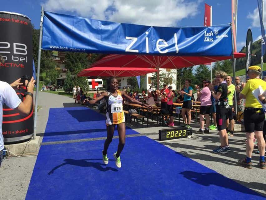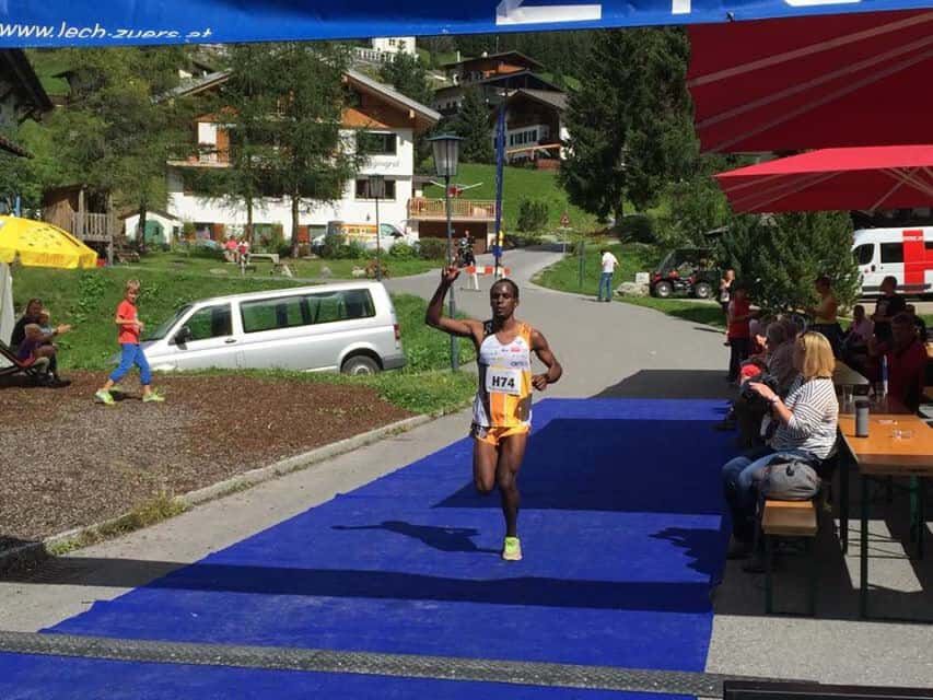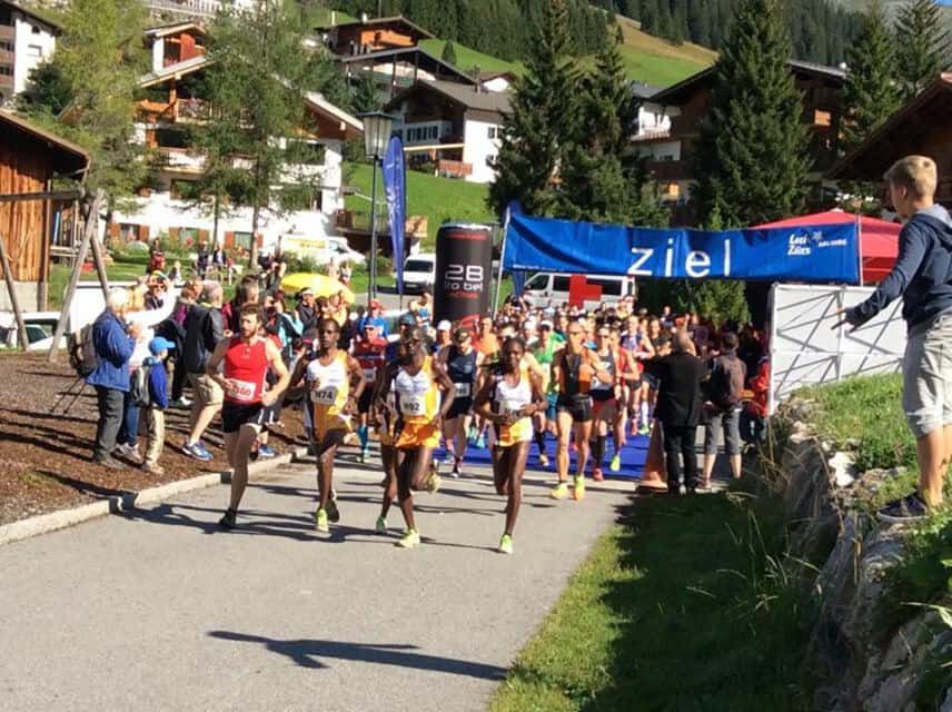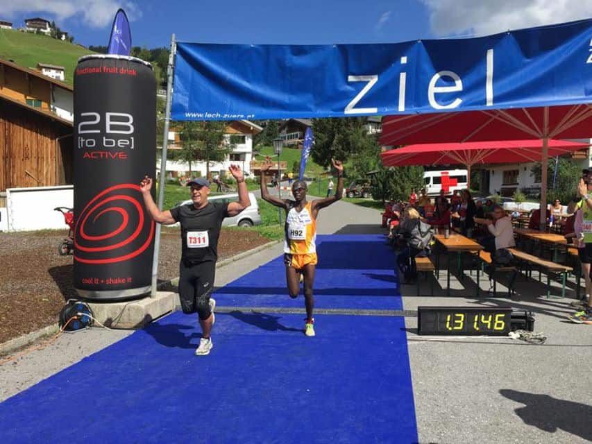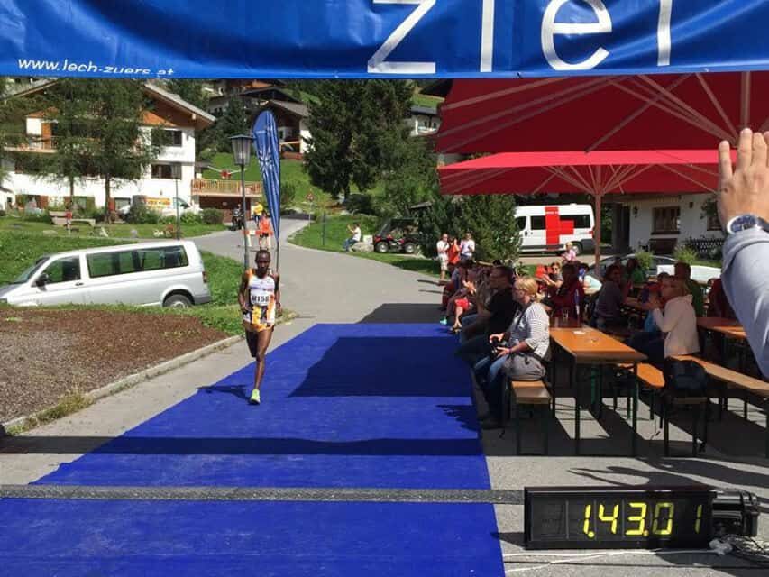 Bei perfekten Laufbedingungen, Sonnenschein und 10 Grad wurde um 10 Uhr in Lech gestartet. Unsere vier Athleten führten vom Start an das 300 Teilnehmer (mehr als 200 davon auf der 23 Km Distanz) große Feld an. Kosgei zeigte vor allem bei den steilen Anstiegen seine Stärke und setzte sich von Samuel ab. Er siegte in der fantstischen Zeit von 1.31,47 (nur 7 Sekunden langsamer als 2014 auf kürzerer Strecke). Samuel finishte in 1.33,15 und blieb unter seiner letzjährigen Zeit! Surum war konstant hinter seinen beiden Teamkollegen und erreichte den sicheren dritten Platz in 1.43,03.