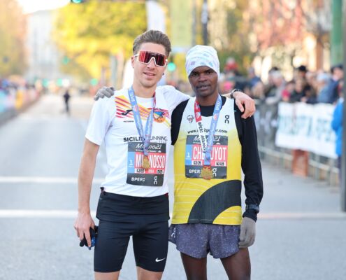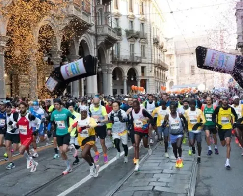 Einen Sieg im Halbmarathon und einen über den Marathon in Graz brachte Peter Wahome MURITHI in seinem Gepäck mit nach Turin. Sein Teamkollege Simon Thuku MUCHAI, der in Graz als „Pacer“ und Debütant die ganze Distanz durchlief und am Ende den 3. Platz in Graz erreichte, lief diesmal für sich. Während Simon Mwangi WAITHIRA die Herrenspitze 35 Km lang mit dem Tempo unterstützte, war unser erfahrener Läufer Simon Kamau NJERI wieder als „Hase“ für die Damenspitze engagiert. Er ließ es sich wieder nicht nehmen, die spätere Damensiegerin bis zum Ziel zu begleiten. Auch in Turin waren die Temperaturen um den Gefrierpunkt gesunken, eine besondere Herausforderung für die knapp 4000 Teilnehmer.