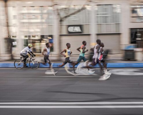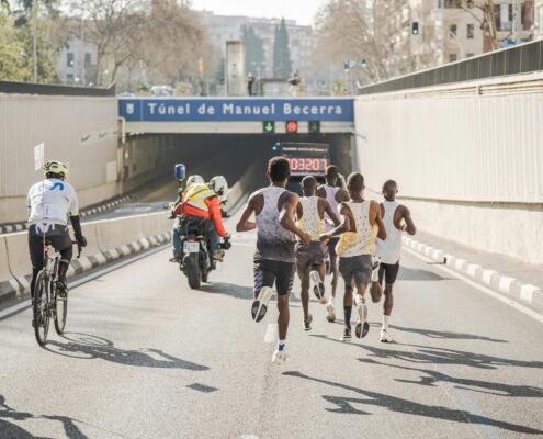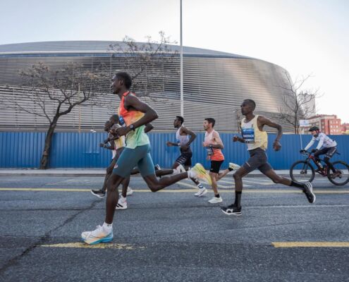 Madrid erwartete unser Trio mit optimalen Bedingungen am Renntag. Trocken, windstill und kühle Temperaturen um die 9 Grad fühlten sich am Start zwar noch etwas frisch an, aber unsere Athleten kennen diese Temperaturen von ihren täglichen Morgentrainingseinheiten im Camp in Kenia. Um 9:15 ging es auf die sehr wellige Strecke, die vor allem auf den ersten 5 Km mit 80 Hm stetig bergauf führte. Ganz schnelle Zeiten wie in Valencia sind auf dieser Strecke nicht möglich, das zeigen auch die bestehenden Streckenrekorde von 59:38 bei den Herren (2021) und 1:07:22 bei den Damen (2022).
