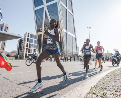 Bei den Damen liefen Chepngetich und Jedidah Schulter an Schulter bis ca. 15 Km, ehe sich die Favoritin einen entscheidenden Vorsprung herausarbeitete, die ihr den Sieg in Madrid sicherte. Jedidah überzeugt mit dem 2. Platz und großartigen 69:00 bei ihrem Debüt, ein klarer Beweis ihres großen Talents. Wir freuen uns sehr, dass sie ein Teil unseres Team ist!