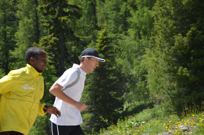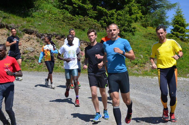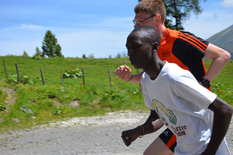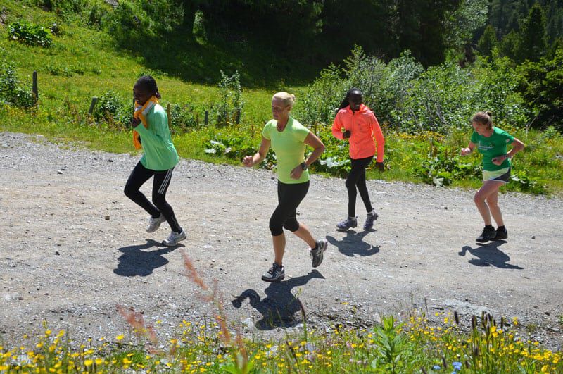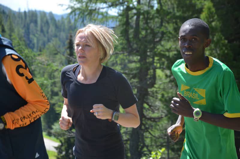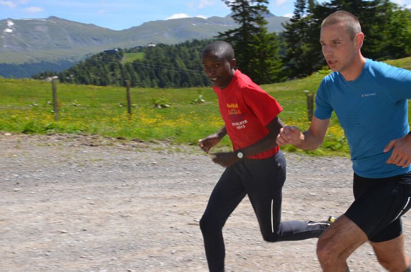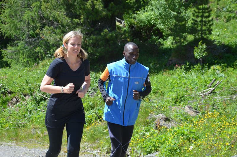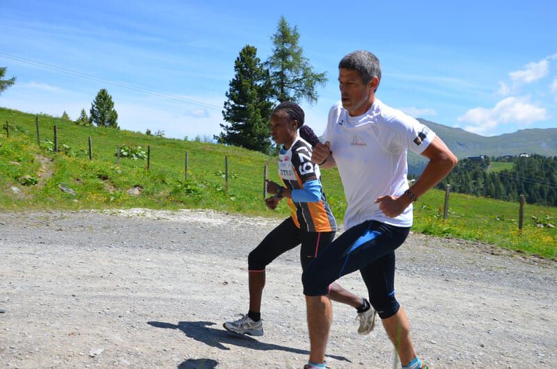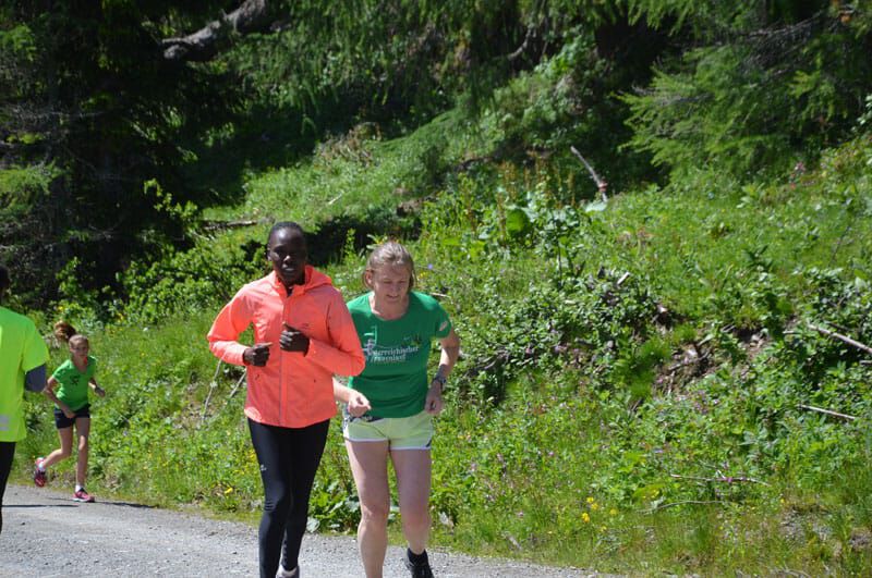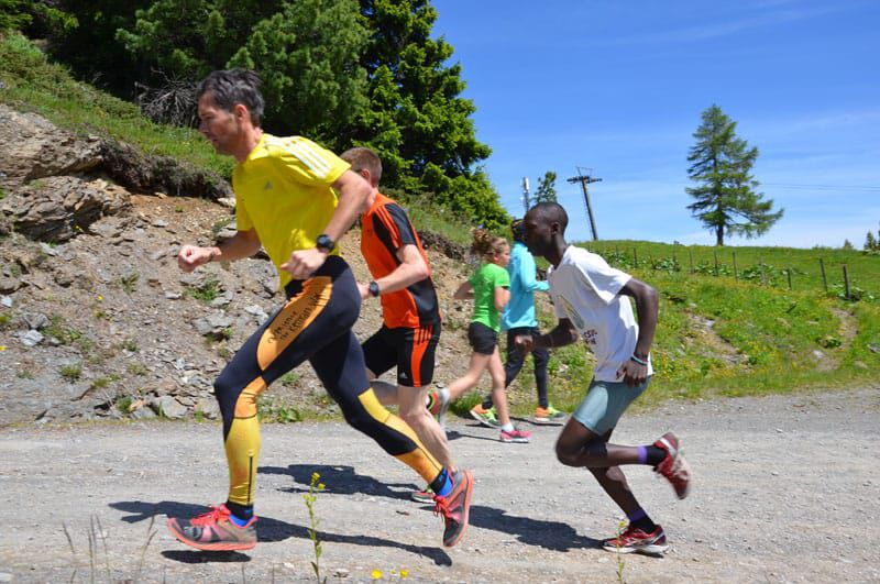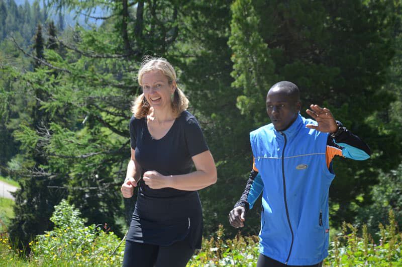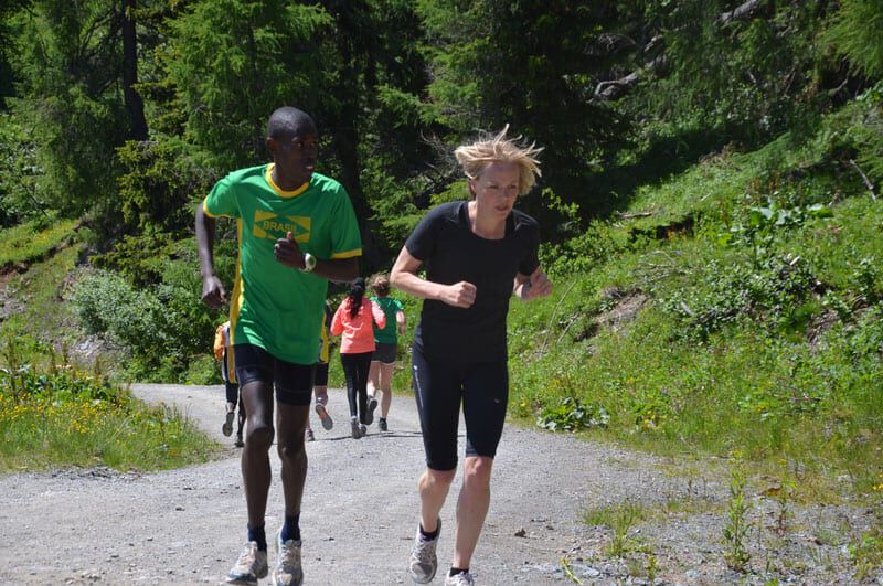 Nach dem lockeren Morningrun und einem stärkenden Frühstück stand um 11Uhr eine der härteren Einheiten im Wochenprogramm auf der Tagesordnung. Eine etwa 150m lange Bergaufpassage, die 20 Minuten lang rauf und runter gelaufen wird. Immer den kenianischen Pacemaker an seiner Seite und alle Teilnehmer ständig im Blickfeld fällt es einem deutlich leichter, sich trotz der Anstrengungen voll zu motivieren. Jede(r) bestimmt sein Tempo selbst und so ist es ein perfektes Training auch für eine Gruppe unterschiedlicher Leistungsstärken. Hut ab vor dem Einsatz jedes Einzelnen!