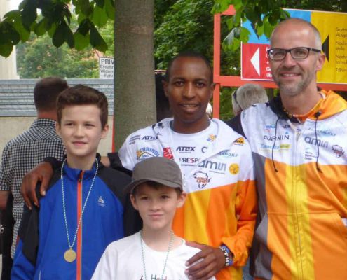 Auch meine beiden Jungs haben einige kenianische Läufer beim Esslinger Stadtlauf kennengelernt und ins Herz geschlossen. Es ist toll, dass man mit einer Patenschaft helfen kann. Mit dem Jungen BONIFACE erhält unsere Hilfe ein Gesicht. Wir haben fest vor, mit unseren zwei Jungs in den nächsten Jahren Kiambogo und damit auch Boniface einmal zu besuchen. Ganz besonders habe ich mich gefreut, dass KIARIE, mein persönlicher Lauf-Coach der Laufwoche am Hochrindl nun auch Laufpate von BONIFACE ist.