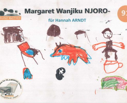 Als Leistungssportlerin war mein ursprüngliches Ziel, als ich meine Reise nach Kenia antrat, meine Leistung für die kommende Saison zu verbessern. Doch in Kiambogo angekommen, wurde der Leistungssport zur Nebensache. Da ich sowohl die Schule und den Kindergarten besuchte, wusste ich sofort, wie wichtig es ist, die Kinder zu unterstützen. Die Leute und das Land haben einen bleibenden Eindruck bei mir hinterlassen. Die Herzlichkeit und Gastfreundlichkeit trotz starker Armut hat mir gezeigt, was wirklich wichtig im Leben ist. Zurück in Deutschland, aber im Gedanken in Kenia, beschloss ich – dank der Unterstützung meiner Eltern – eine Patenschaft zu übernehmen.