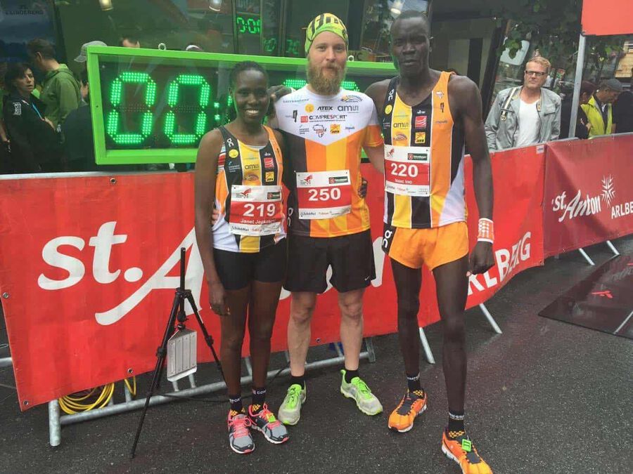 Bei der 16. Auflage des Arlberger Jakobilaufs mit Start und Ziel in St. Anton starteten wir heuer wieder mit zwei Run2gether-Läufern. Janet Jepkosgei KIMUGUNG und Isaac Ino KADENGE machten sich auf die 21,1 Km lange und sehr kupierten Strecke. Während Janet ihren Erfolg vom Jahr 2014 wiederholen wollte, war es für Ino das erste Antreten über die Halbmarathondistanz in Europa. Nach der langen Anreise von unserem Sommerstützpunkt auf der Hochrindl heute morgen hatten sich unsere Athleten gut vorbereitet und machten sich um 16 Uhr auf den anspruchsvollen Rundkurs. Leichter Regen vor dem Start machten die Strecke zwar etwas rutschig, der Regen hörte aber pünktlich zu Rennbeginn auf, somit waren optimale Bedingungen für einen spannenden Bewerb sichergestellt.