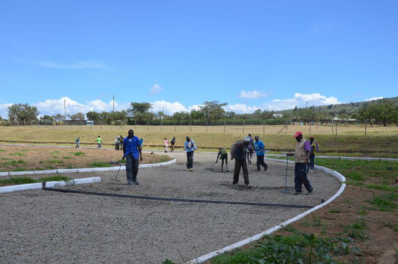 Nach über 2 Jahren Bauzeit mit vielen Rückschlägen und stetig gestiegenen Kosten werden wir unser run2gether Kiambogo Primary School Stadium am Sonntag den 21. Dezember eröffnen. Die Bauphase hat uns viel abverlangt und umso glücklicher sind wir, dass die 400m Laufbahn und in Kürze nach Anwachsen der Wiese auch der Fußballplatz den Kindern der Primary und Secundary School sowie unseren Athleten und allen Sportbegeisterten der Region zur Verfügung stehen wird. Derzeit laufen noch die letzten Arbeiten an einem kleinen Vereinshaus mit Umkleiden und Cafe sowie am Belag der Laufbahn und Rasen. Der vor einer Woche eingesetzte Regen beschleunigt zwar das Anwachsen, hat aber bei der Laufbahn auch erste Problembereiche gezeigt, die wir nun noch verbessern. Selbstverständlich wird die Anlage laufende Arbeiten erfordern, ein weiterer Grundstein für zukünftige sportliche Erfolge unserer Athleten sollte mit der Fertigstellung aber nun gelegt sein.