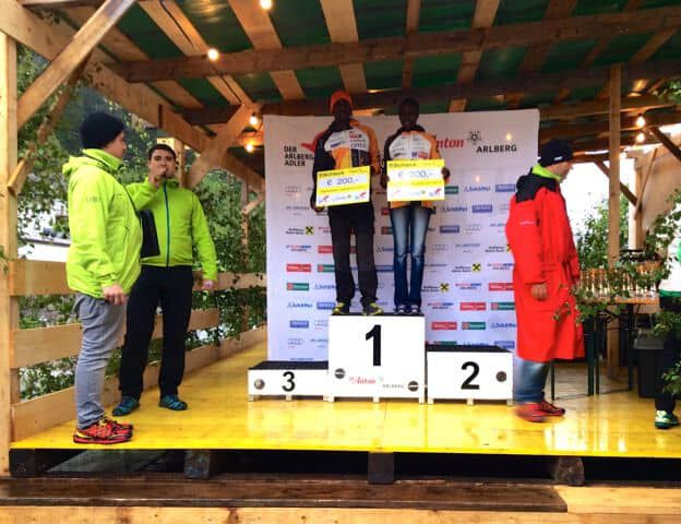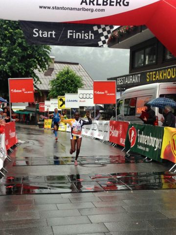 Am Start angekommen wurden die Läufer zwar von angenehmen Lauftemperaturen um die 15°C, aber leider auch von starkem Regen begrüßt. Pünktlich um 16.00 ging es auf die 21,1 km lange Strecke, die zuerst abwärts ihren Wendepunkt in Schnann hatte, dann wieder stetig berauf zurück nach St. Anton führte und mit ca. 200 HM keineswegs als flach zu beurteilen ist. Samuel lief stets ein kontrolliertes Rennen und konnte unangefochten seinen Vorsprung von über 5 Min. auf den Zweitpatzierten ins Ziel bringen. Er gewinnt in 1.08.53 und bleibt deutlich unter der Siegerzeit von dem vorjährigen Sieger Stanley Kipkoech Kirui.