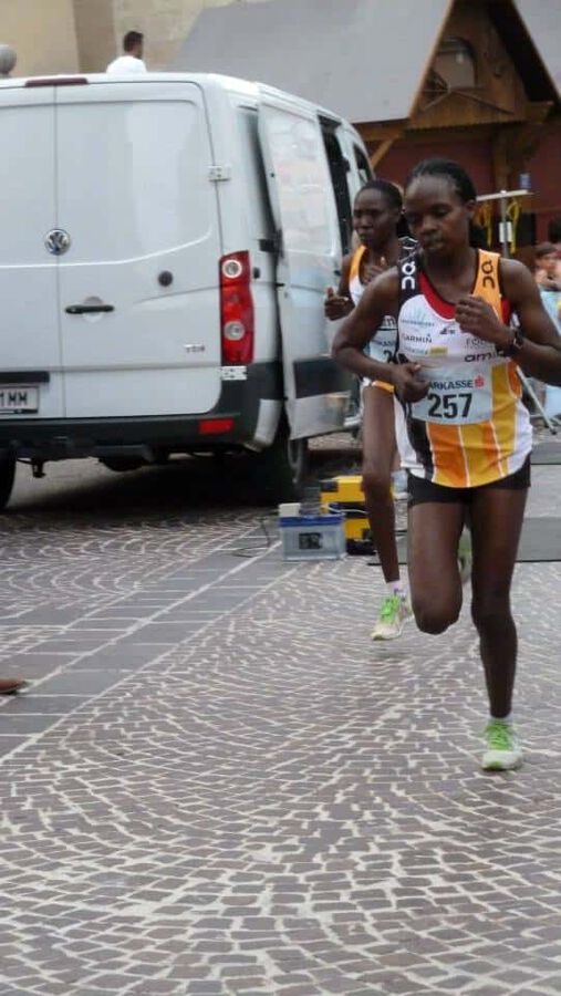 Lucy Wambui MURIGI, Siegerin 2012 hatte leider ab KM 5 mit Muskelkrämpfen im rechten Oberschenkel zu kämpfen und musste sich nach beherztem Kampf mit nur 8 Sekunden Rückstand (42.53) der jungen Osttirolerin Susanna Mair (42.44) geschlagen geben.