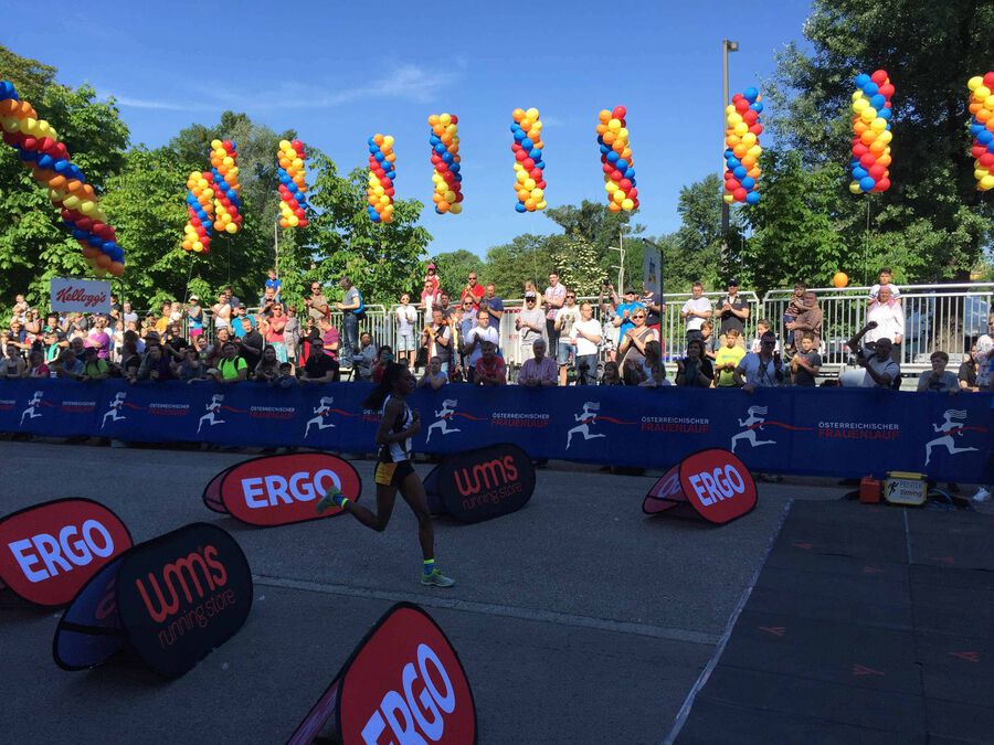 In Wien fand am Sonntag zum 29. Mal der Österreichische Frauenlauf statt. Wie schon in den vergangenen Jahren waren wir auch heuer wieder durch eine unserer Topläuferinnen vertreten. Viola JELAGAT, im vergangenen Jahr Zweite, war für Run2gether wieder über 5 Km am Start. Neben Topläuferinnen und zum Teil olympiaqualifizierten Mittelstreckenläuferinnen aus Österreich, Portugal, Ungarn, Australien, Island und der Slowakei wollte sie den aus dem Jahr 2011 stammenden Streckenrekord in Angriff nehmen. Leider plagt sie seit ihrem Triumph in Berlin am vergangenen Wochenende eine Wadenverletzung und so musste sie sich schließlich nach beherztem Kampf mit dem 4. Platz zufrieden geben. Der Streckenrekord war auf Grund der schon sommerlichen Temperaturen am Start dieses Jahr außer Reichweite. Wir wünschen unserer Viola nun rasche Besserung und gute Regeneration in Kenia!