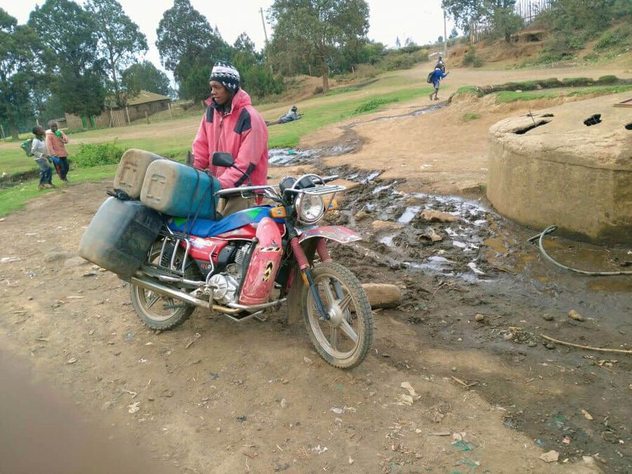 Hier seht ihr, wie die Bevölkerung Kiambogos momentan das Wasser mühevoll nach Hause bringen muss: