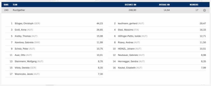 Während sich unsere Run2gether-Teilnehmer über 7,3-44,23 (!) absolvierte Kilometer freuten, schaffte die weltweit beste Dame, die Japanerin Kaori Yoshida 65,7 km und der Italiener Giorgio Calcaterra sogar sage und schreibe 88,44 km !