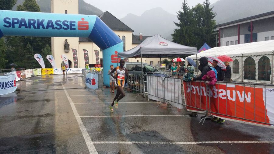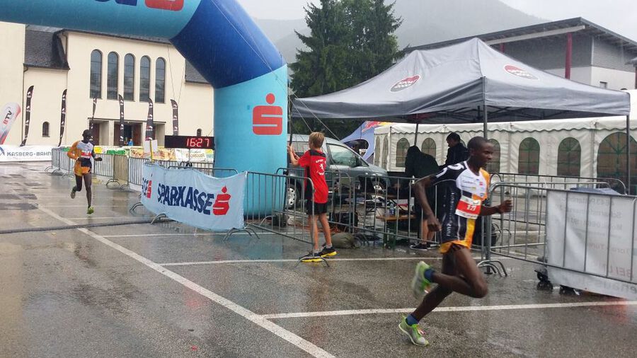 Knapp 1000Hm auf 4,5km. Das verspricht einen extrem steilen und anspruchsvollen Berglauf. In seiner Vorbereitung auf den Jungfraumarathon wählte Gikuni die Kombination aus Erzberg und Katrin um einen bewußten Bergausdauerschwerpunkt an diesem Wochenende zu setzen. Auf den ersten Kilometern noch mit Muigai und Chege setzte sich Gikuni im zweiten Abschnitt von seinen Teamkollegen ab und lief kontrolliert zu einem sicheren Sieg. Platz 2 für Muigai und an 6. Stelle der heute nicht an seine gute Form der Vorwochen anschließende Chege.