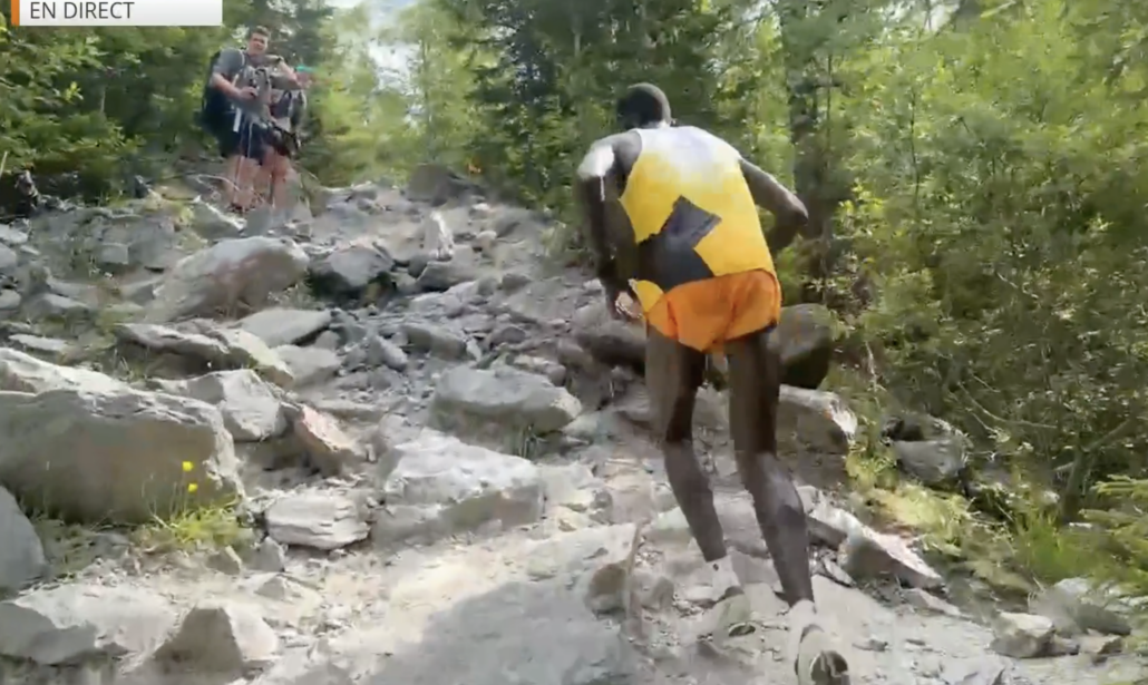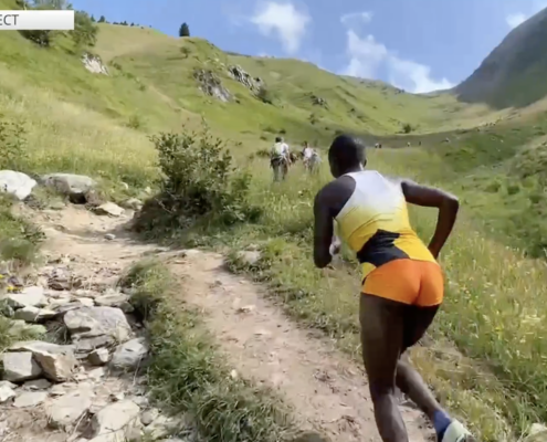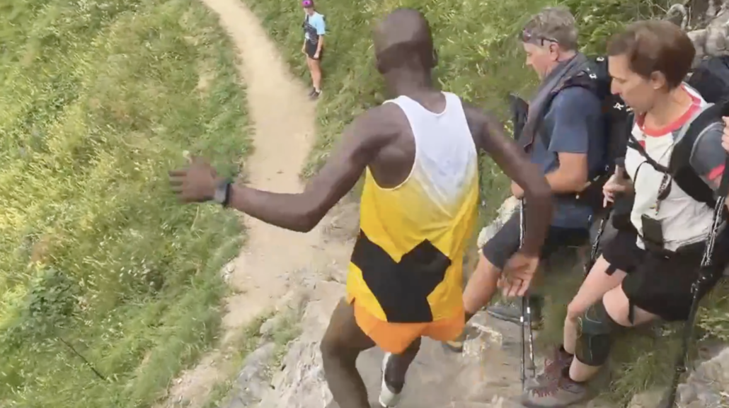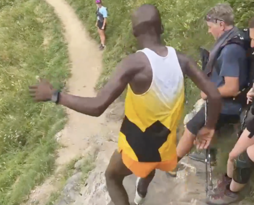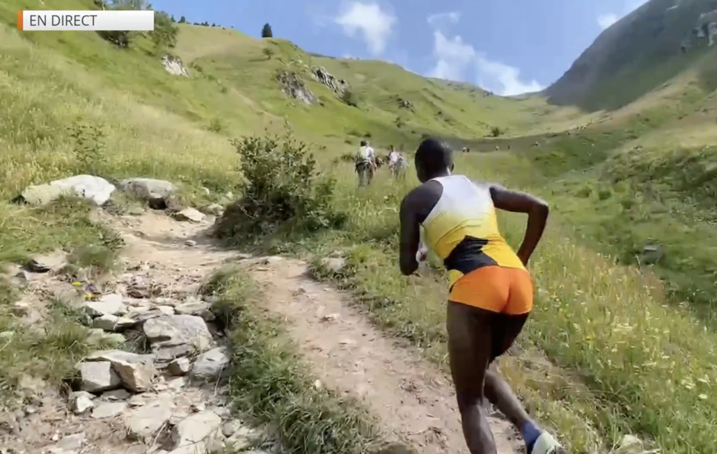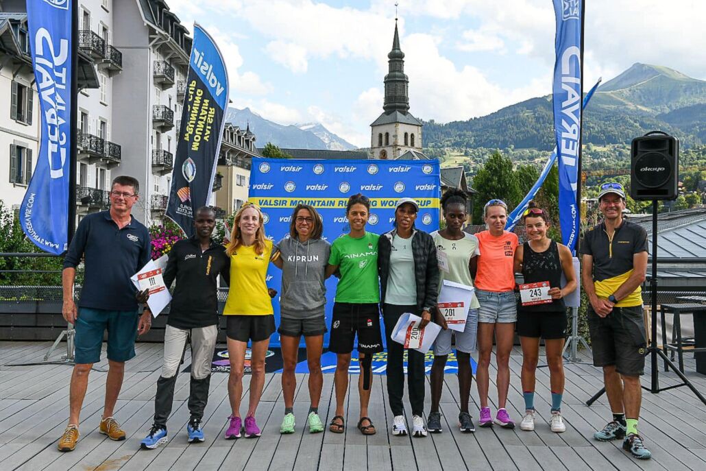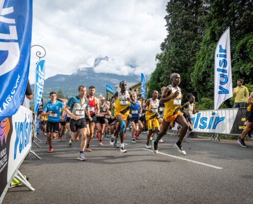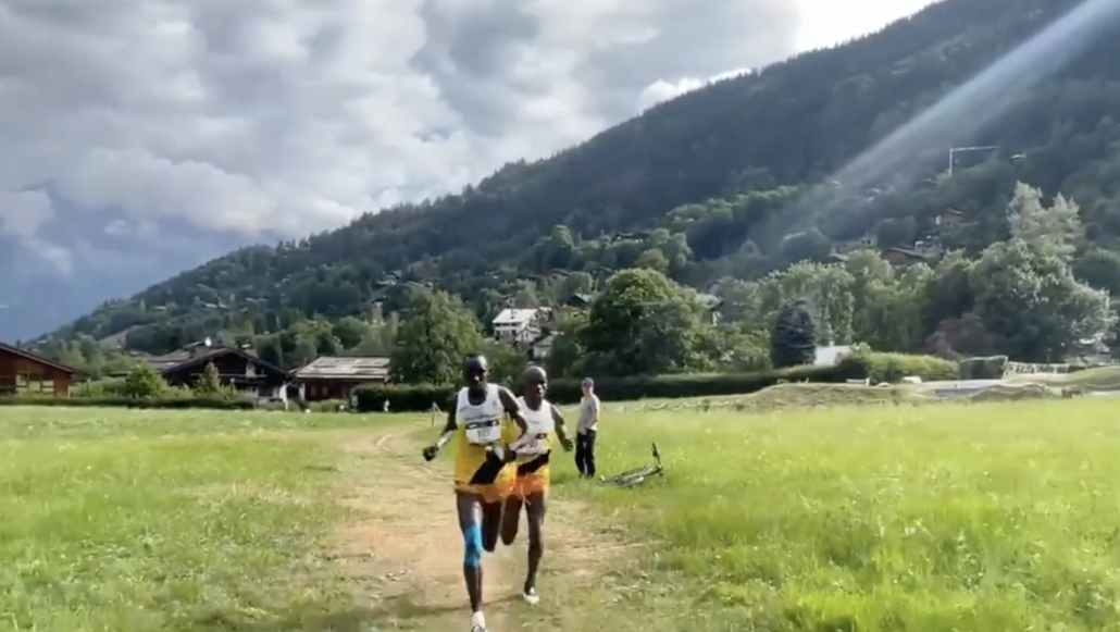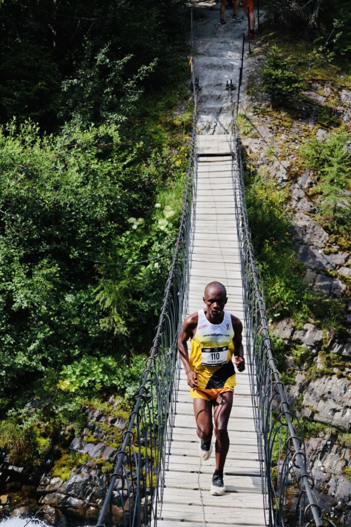 Samstag früh um 9.00 ging es auf die Strecke. Patrick, Philemon und Timothy setzten sich sofort nach dem Startschuss an die Spitze und legten gleich mit einem Höllentempo vor. Nach den ersten zwei flachen Km waren Patrick und Philemon gleich auf und davon, Timothy mit etwas Abstand dahinter. Doch auch die Zweisamkeit an der Spitze war nicht von langer Dauer, denn Patrick setzte sich schon vor dem ersten Steilstück von seinem starken Teamkollegen ab. Mit getapten Knie – Patrick musste seine Teilnahme aufgrund von Knieschmerzen beim Fletta Trail letzten Sonntag kurzfristig absagen – lief er in unglaublicher Leichtigkeit bergauf, wie bergab einem ungefährdeten Start-Ziel-Sieg entgegen. Nach der Hälfte der Strecke betrug sein Vorsprung schon mehr als 2 Minuten auf Philemon, der sich auch bis ins Ziel halten sollte. Patrick erreichte das Ziel auf knapp 2.400m Seehöhe überlegen als Erster. Zwei Minuten später überquerte Philemon als ungefährdeter Zweiter die Ziellinie. Timothy konnte sich bis KM 11 auf dem dritten Platz halten, aber der zweite, gefühlt endlos steile Anstieg zum Refuge du Nid d’Aigle kostete ihm den Platz am Podest. Er wurde schließlich nur Achter.