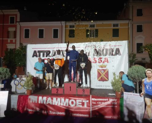 Vincent Kimutai TOWETT und Leonard Kipngeno BOR waren die beiden Läufer, die wir auf der Hinfahrt nach Frankreich in Varese „zurückließen“. Dies aber selbstverständlich aus gutem Grund, denn sie waren in Massa zum 10,2 Km Stadtkurs beim Attraverso le Mura gemeldet. Auch keine unbekannte Begegnung mit dem schnellen Kurs in der Toskana für uns, wenngleich unsere beiden Protagonisten in Massa am Samstagabend ihr Debüt feierten. Leonard ist einer unserer Rookies im Team und Vincent in bestechender Form. Er überraschte uns in den letzten Wochen mit seiner Vielseitigkeit. Seine neue PB über 5000m vergangenes Wochenenden auf der Bahn, war eine Visitenkarte für die flachen 10,2 Km.