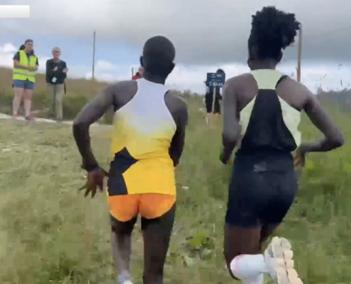 Unsere beiden Läufer sollten sich aber mit starken Leistungen hinter Pingua die Plätze am Podest sichern. Die Führungsgruppe zog sich sukzessive nach 2 von 5 Runden auseinander, der harte Kampf um die Plätze verlagerte sich auf die letzten zwei Runden. Vincent und Leonard waren bis zum Schluss zusammen, Vincent hatte letztlich den längeren Atem und finishte knapp 20 Sekunden hinter Pingua und zarte 5 Sekunden vor seinem Mannschaftskollegen auf dem zweiten Platz, Leonard auf dem 3. Rang. Ein tolles Ergebnis der beiden in dem starken Feld! Hongera sana!