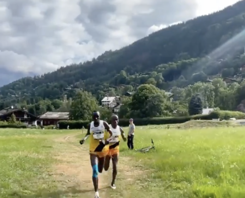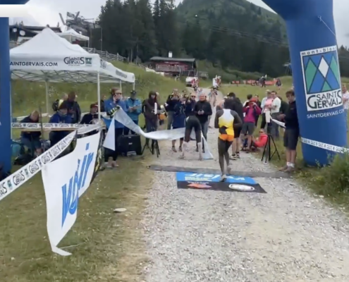 Die Strecke in Frankreich am Fuße des Mont Blanc war für Patrick und Philemon kein Neuland, belegten sie 2022 hier schon Platz 1 und 2. Allerdings konnten sie sich auf ihre Vorjahreserfahrungen nur bedingt verlassen, denn aufgrund von Bauarbeiten wurde die Strecke zum letzten Jahr grundlegend verändert und wies auf knapp 20 Km mit 2000 positiven Höhenmetern auch 650 negative Hm auf. Dass unsere Läufer bergab nicht zu den Allerstärksten zählen, ist nicht nur uns, sondern auch den Konkurrenten bekannt. Es war also im Damen-, wie auch Herrenrennen Spannung angesagt.