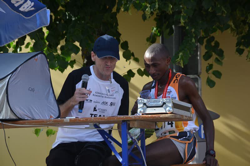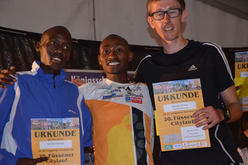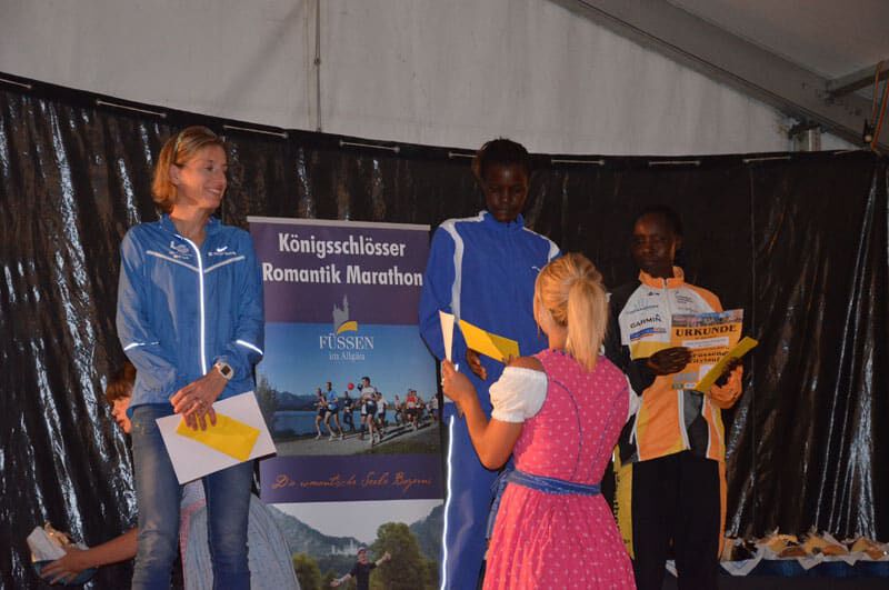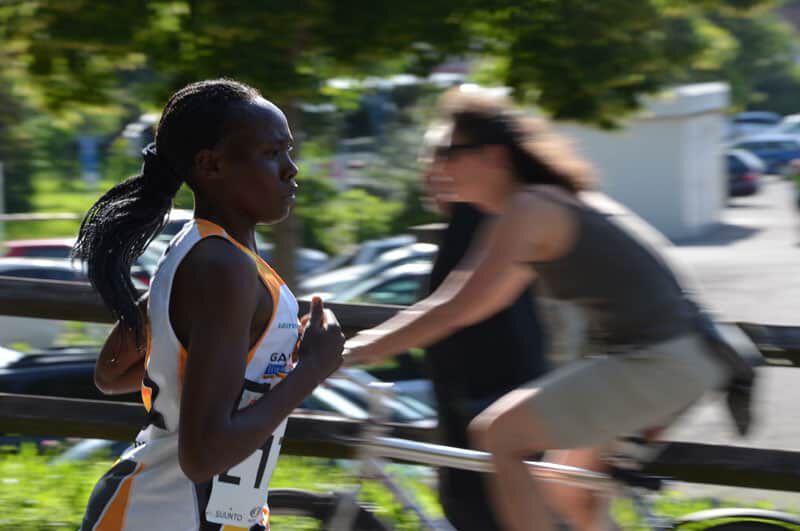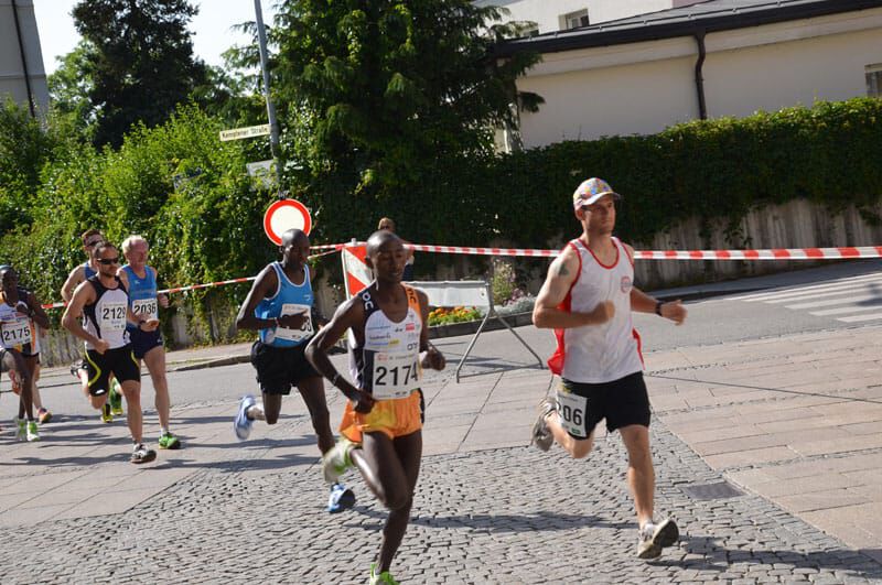 Luftlinie nicht all zu weit entfernt begann der Laufabend in Füssen mit dem 10km Bewerb um 17Uhr. Überraschend starke Konkurrenz aus Kenia konnte Simon Kiruthi MUTHONi nicht erschrecken, geschweige denn abhalten seine Klasse abermals unter Beweis zu stellen. Auf der dritten und letzten Runde distanzierte er seinen kenianischen Gegner deutlich und stellte einen neuen Streckenrekord auf. Impressive performance! Und das bei über 30° und Sonnenschein. Janet zeigte sich nach ihrem Kollaps vor 2 Wochen zwar erholt aber noch weit entfernt von ihrer Bestform. Hoffen wir, dass sie in den nächsten Wochen wieder in “ihre Spur” findet.