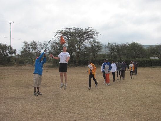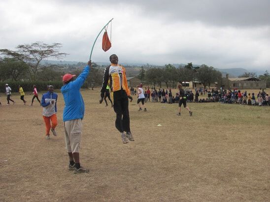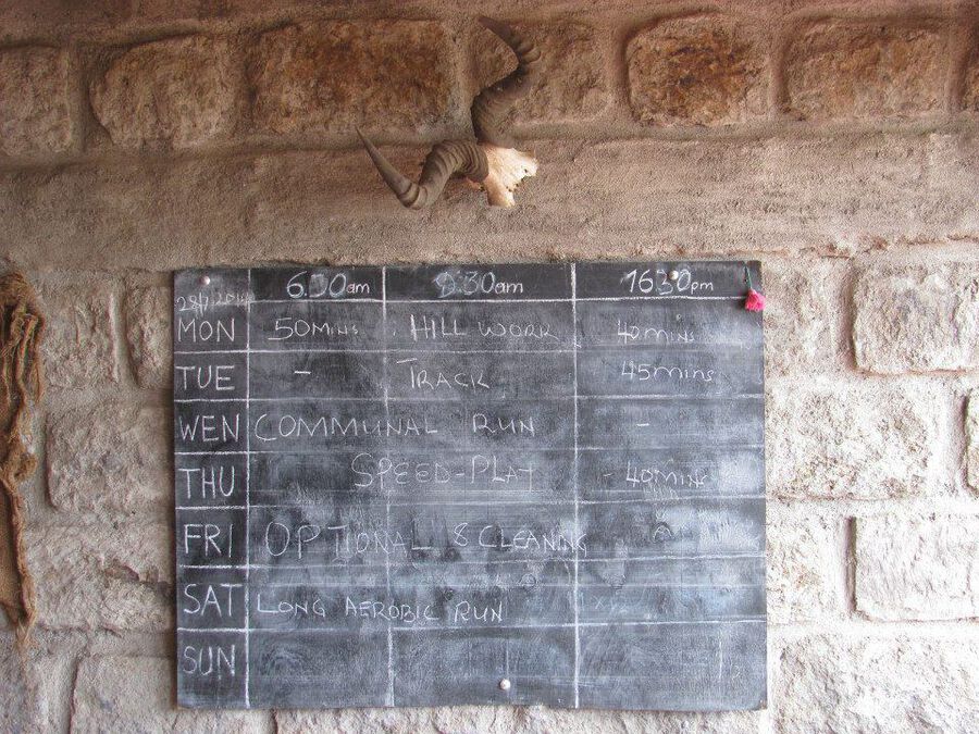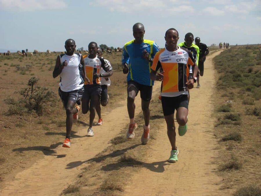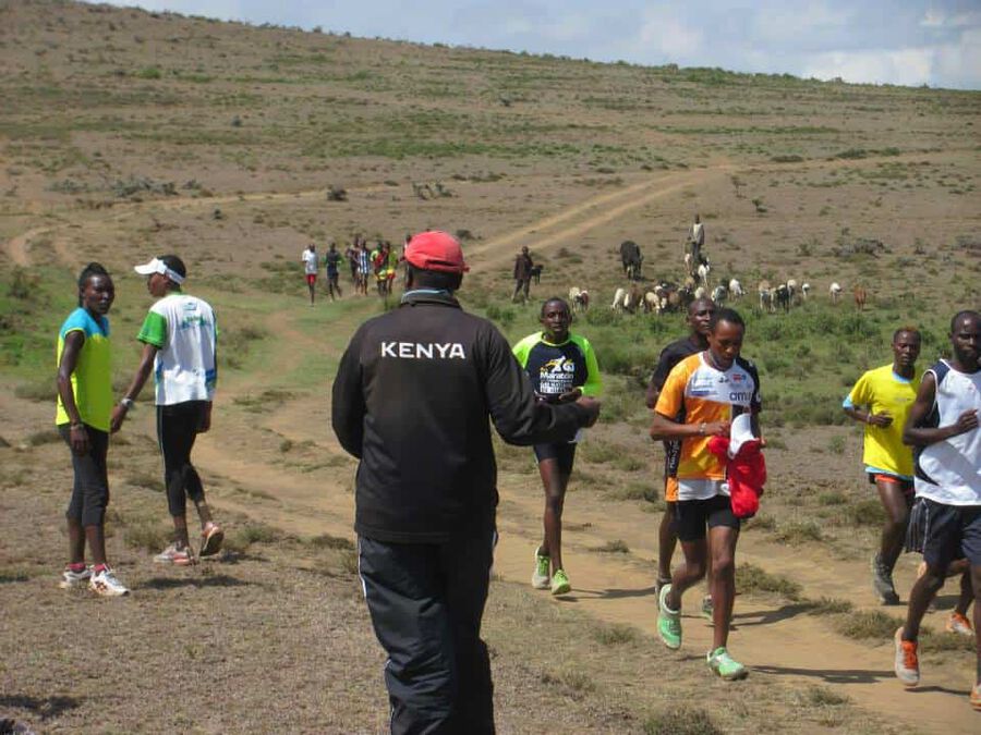 Während man bei uns ja so selbstverständlich fast in jedem Dorf oder Städtchen eine Tartanbahn vorfindet läuft das bislang in Kiambogo etwas anders ab. Um überhaupt zur ” Bahn” zur gelangen darf man sich zuerst einmal 5km den Berg hinauf ” warmlaufen” und dabei 300Hm überwinden. Schließlich auf 2700m Höhe angekommen begibt man sich in ein Schulgelände, auf welchem sich ein großes Fußballfeld befindet. Hierauf liegen dann pausierende Schüler, es weiden Kühe und naja, drumherum trainieren eben kenianische Topathleten… Selbstverständlich aber nicht auf Asche oder gar Tartan! Vielmehr hat sich irgendjemand wohl einmal die Mühe gemacht, um das Feld herum 400m abzumessen (die GPS-Uhr ist sogar einverstanden damit!!) und durch eine Vielzahl von Läufern wurde eine Spur in das Gras hineingelaufen. Tja und so holpert man dann über Schlaglöcher und Kuhfladen. Zumindest wenn man Europäer ist… Wenn man Kenianer ist, fliegt man eben über all diese Unebenheiten hinweg und absolviert die 10x1000m dann locker jeweils unter 2:58…