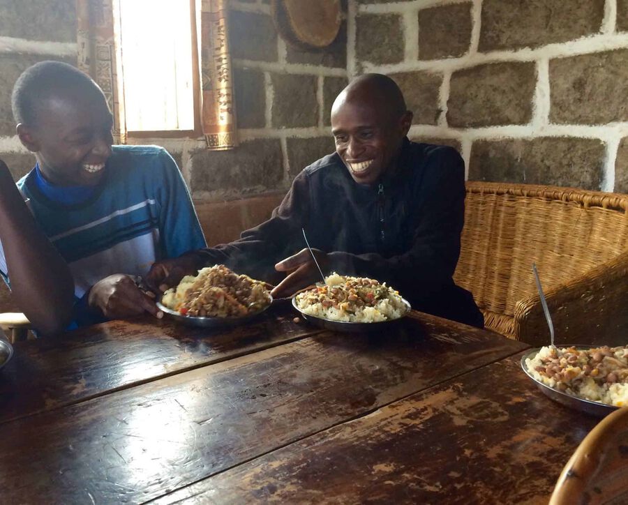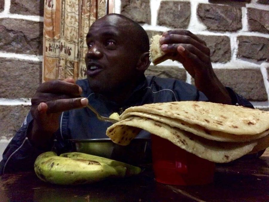 All the pro athletes in the Run2gether camp here in Kiambogo are extremely thin and well trained. They weigh between 51 kg (112 pounds) and 58 kg (128 pounds). To compare, I’m 180 cm (71 inches) and weigh roughly 68 kg (150 pounds). But I never could have imagined the amount of food that these guys can put away. I’m running here about the same distance that they are (though at a different speed), yet I’m only eating 50% at the most of what they are. The fact is that everything they eat is 100% healthy: ugali (cornmeal), rice, chapati, and potatoes, along with a colorful assortment of fruit and vegetables. Plus, there are beans and cabbage every day. Their only treat is the highly sweet chai tea, which they drink mornings and afternoons.
