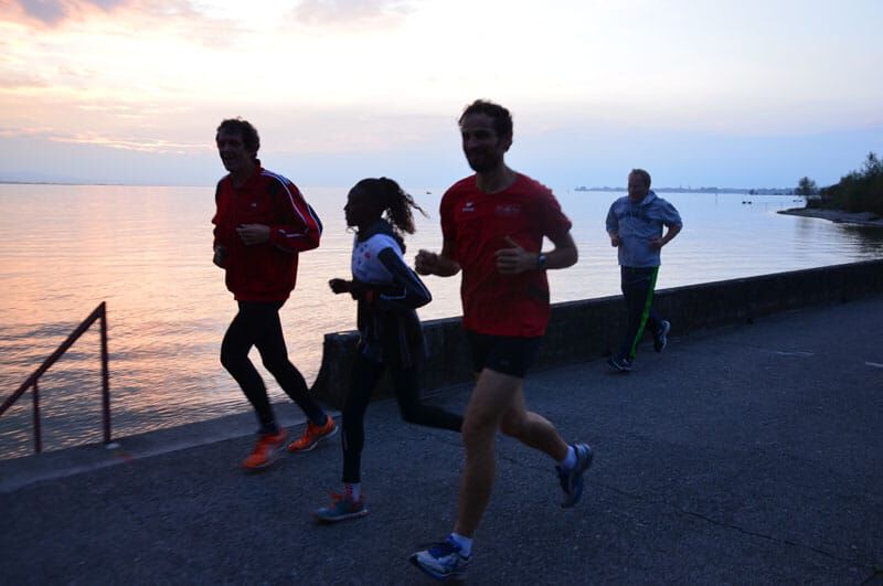 Am Mittwoch gings für einen Teil des Teams an den Bodensee, wo unmittelbar nach Ankunft ein Auslaufen mit über 30 TelnehmerInnen des Bodenseemarathons am kommenden Sonntag am Programm stand. Tolles Wetter und motivierte und interessierte Teilnehmer machten den ersten Abend am Bodensee zu einem tollen Erlebnis. Nach einem intensiven Fahrtspiel über insgesamt knapp 20km heute Vormittag ist derzeit Regeneration angesagt.